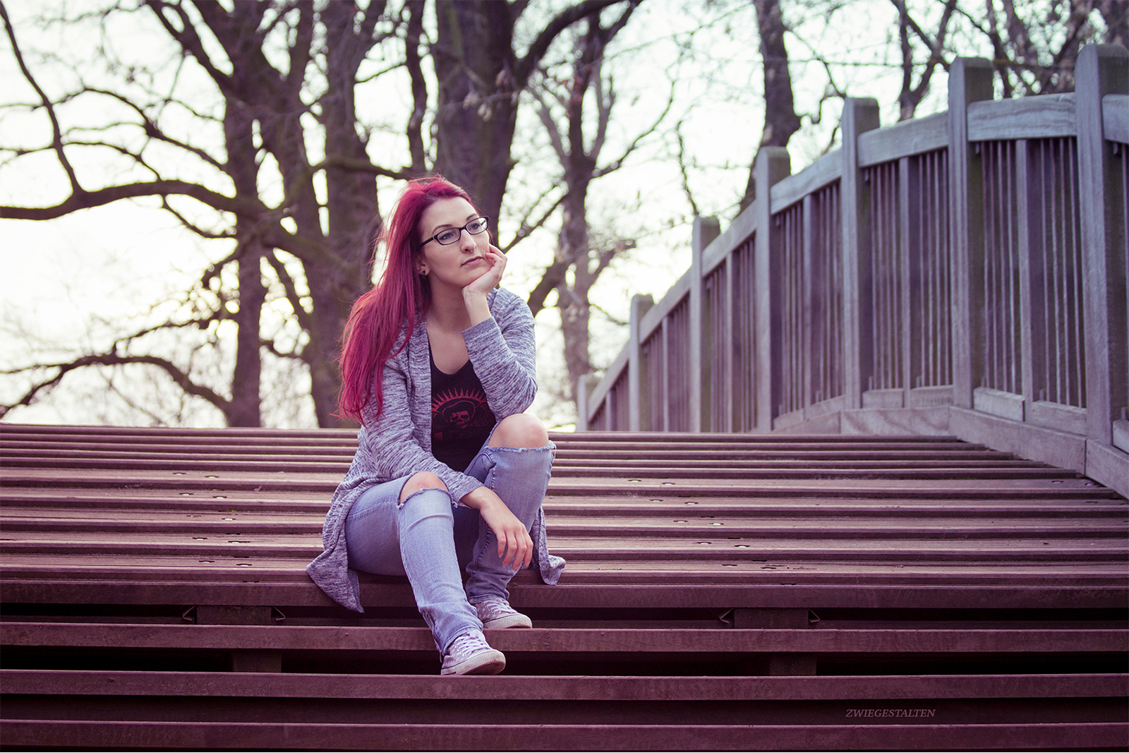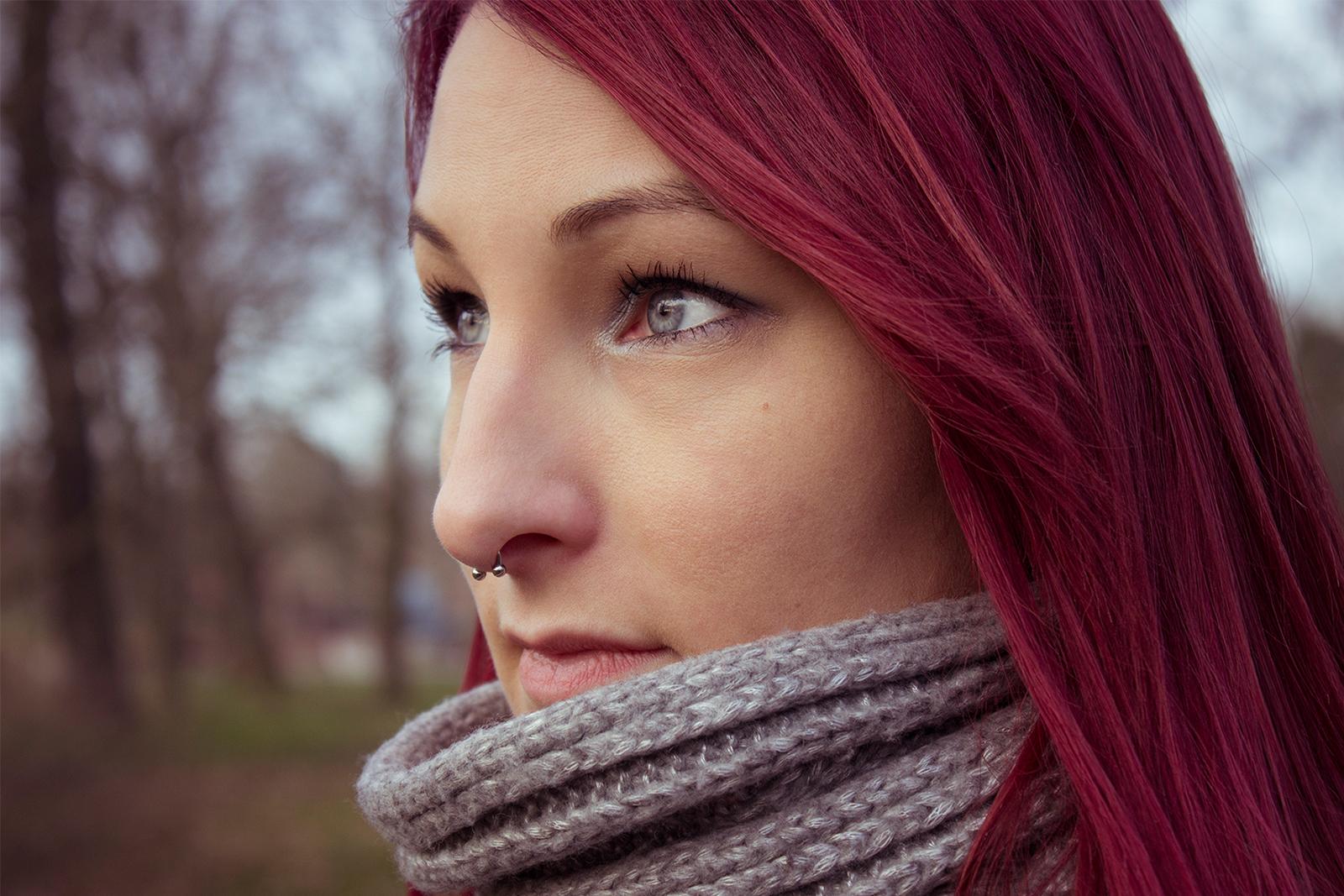 In der Nachbearbeitung habe ich den Aufnahmen einen dezenten grün-bläulichen Farbstich verliehen, um gezielt einen spannenden Kontrast zu schaffen. Dadurch rücken die roten Haare noch stärker in den Fokus und werden zum zentralen Blickfang der Bilder.